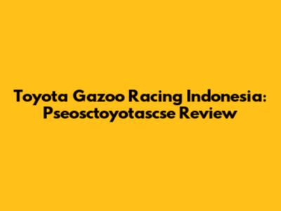 Toyota Gazoo Racing Indonesia: Pseosctoyotascse Review