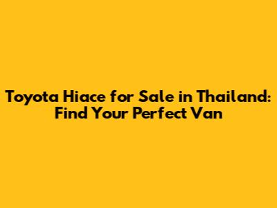 Toyota Hiace For Sale In Thailand: Find Your Perfect Van
