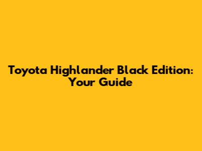 Toyota Highlander Black Edition: Your Guide