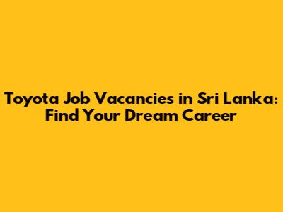 Toyota Job Vacancies In Sri Lanka: Find Your Dream Career