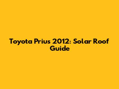 Toyota Prius 2012: Solar Roof Guide