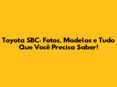 Toyota SBC: Fotos, Modelos E Tudo Que Você Precisa Saber!