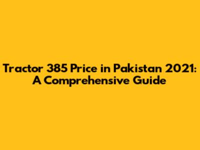 Tractor 385 Price In Pakistan 2021: A Comprehensive Guide
