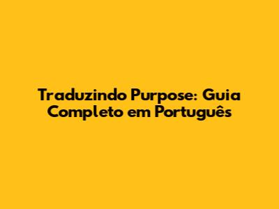 Traduzindo 'Purpose': Guia Completo Em Português