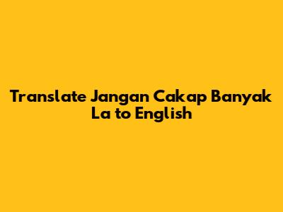 Translate Jangan Cakap Banyak La To English