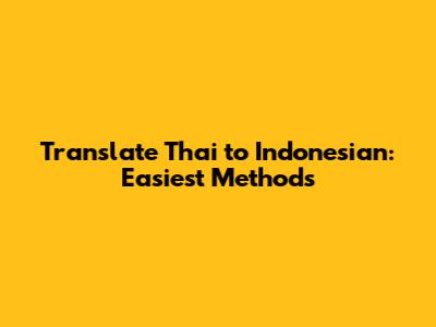 Translate Thai To Indonesian: Easiest Methods