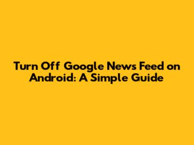 Turn Off Google News Feed On Android: A Simple Guide