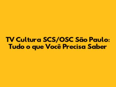 TV Cultura SCS/OSC São Paulo: Tudo O Que Você Precisa Saber