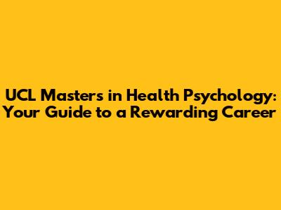 Hey there, future health psychology superstars! Ever wondered how to unlock the secrets of the mind and body connection? Well, look no further, because a UCL Masters in Health Psychology could be your golden ticket. This program is a deep dive into understanding how our thoughts, feelings, and behaviors impact our physical health. It's not just about textbooks and lectures; it's about making a real difference in people's lives and shaping the future of healthcare. Ready to explore what makes this program so awesome? Let's dive in, shall we?