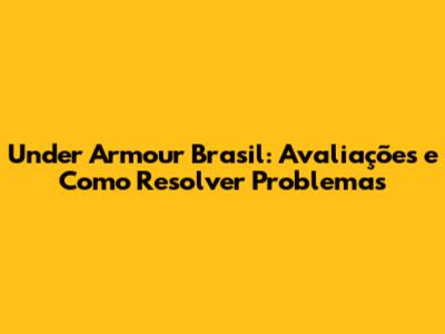 Under Armour Brasil: Avaliações E Como Resolver Problemas
