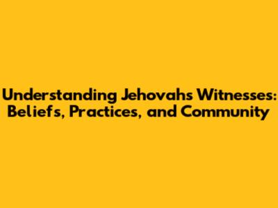 Understanding Jehovah's Witnesses: Beliefs, Practices, And Community