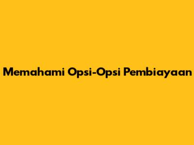 Understanding Opsi-Opsi Pembiayaan