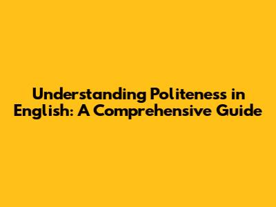 Understanding Politeness In English: A Comprehensive Guide