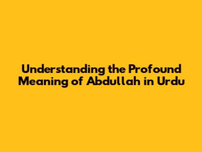 Understanding The Profound Meaning Of 'Abdullah' In Urdu
