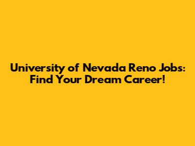 University Of Nevada Reno Jobs: Find Your Dream Career!