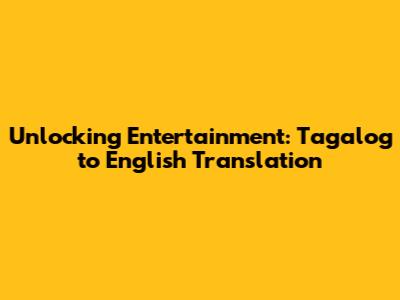 Unlocking Entertainment: Tagalog To English Translation