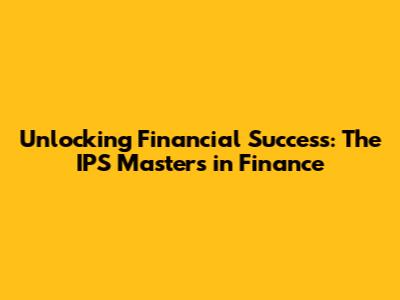 Unlocking Financial Success: The IPS Masters In Finance