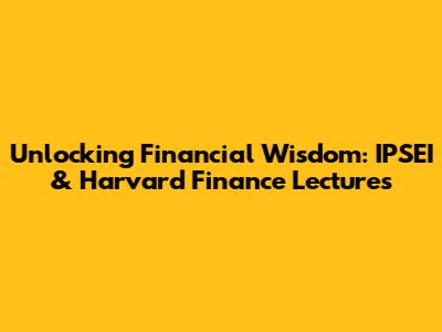 Unlocking Financial Wisdom: IPSEI & Harvard Finance Lectures