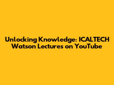 Unlocking Knowledge: ICALTECH Watson Lectures On YouTube