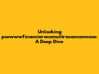 Unlocking Psewwwfinancieracomultrasancomcose: A Deep Dive