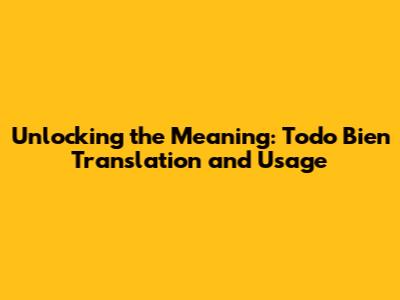 Unlocking The Meaning: 'Todo Bien' Translation And Usage