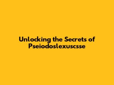 Unlocking The Secrets Of Pseiodoslexuscsse