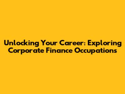 Unlocking Your Career: Exploring Corporate Finance Occupations