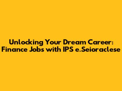 Unlocking Your Dream Career: Finance Jobs With IPS E.Seioraclese