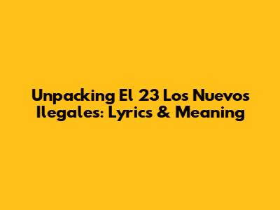 Hey guys, let's dive into the fascinating world of music and lyrics, specifically focusing on the track, "El 23 Los Nuevos Ilegales". This song has been making waves, and for good reason! We're gonna break down the lyrics, analyze the meaning, and explore why it's resonating with so many people. Get ready to uncover the story behind the music and understand the powerful message it conveys. This analysis isn't just about the words; it's about understanding the context, the emotions, and the impact of the song. Let's get started!