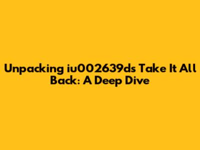 Unpacking Iu002639d's 'Take It All Back': A Deep Dive