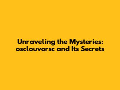 Unraveling The Mysteries: Osclouvorsc And Its Secrets