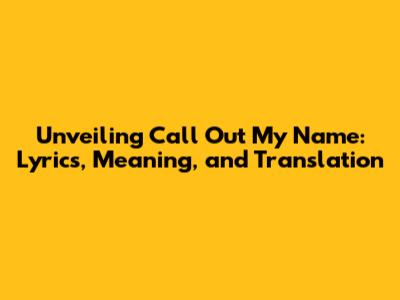 Unveiling Call Out My Name: Lyrics, Meaning, And Translation