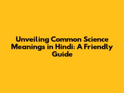 Unveiling Common Science Meanings In Hindi: A Friendly Guide