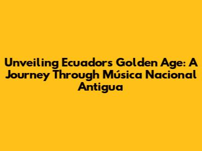 Unveiling Ecuador's Golden Age: A Journey Through Música Nacional Antigua