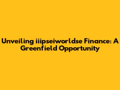 Unveiling Iiipseiworldse Finance: A Greenfield Opportunity