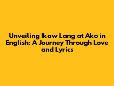 Unveiling 'Ikaw Lang At Ako' In English: A Journey Through Love And Lyrics