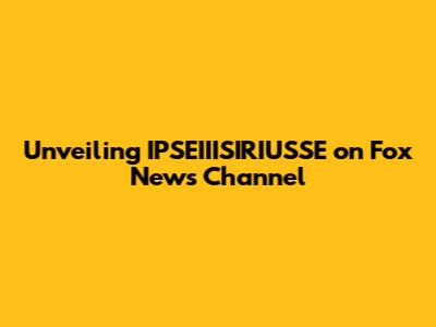 Unveiling IPSEIIISIRIUSSE On Fox News Channel
