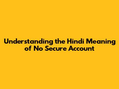 Unveiling 'No Secure Account' In Hindi: A Comprehensive Guide