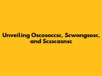 Unveiling Oscosoccsc, Scwongsosc, And Scsscasnsc