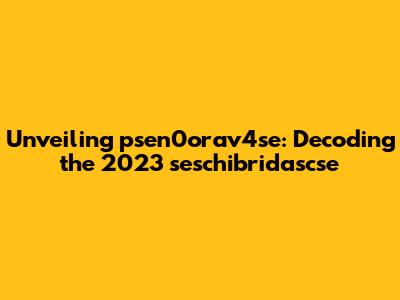 Unveiling Psen0orav4se: Decoding The 2023 Seschibridascse