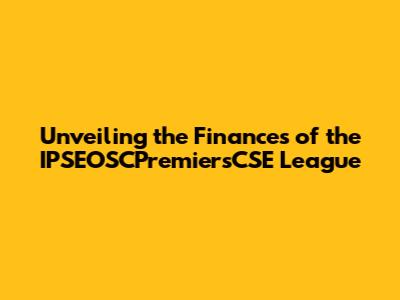 Unveiling The Finances Of The IPSEOSCPremiersCSE League
