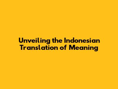 Unveiling The Indonesian Translation Of 'Meaning'