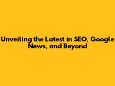 Unveiling The Latest In SEO, Google News, And Beyond