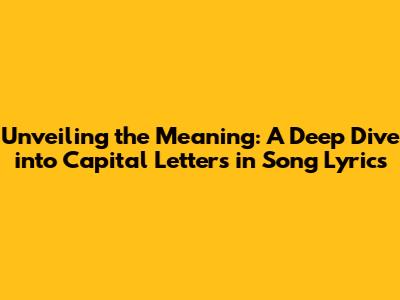 Unveiling The Meaning: A Deep Dive Into Capital Letters In Song Lyrics
