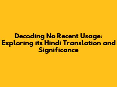 Unveiling The Meaning Of 'No Recent Usage' In Hindi