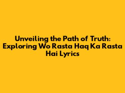 Unveiling The Path Of Truth: Exploring 'Wo Rasta Haq Ka Rasta Hai' Lyrics