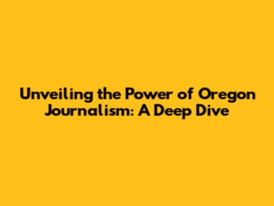 Unveiling The Power Of Oregon Journalism: A Deep Dive
