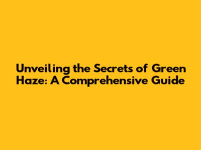 Unveiling The Secrets Of Green Haze: A Comprehensive Guide