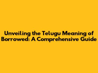 Unveiling The Telugu Meaning Of 'Borrowed': A Comprehensive Guide