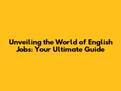 Unveiling The World Of English Jobs: Your Ultimate Guide